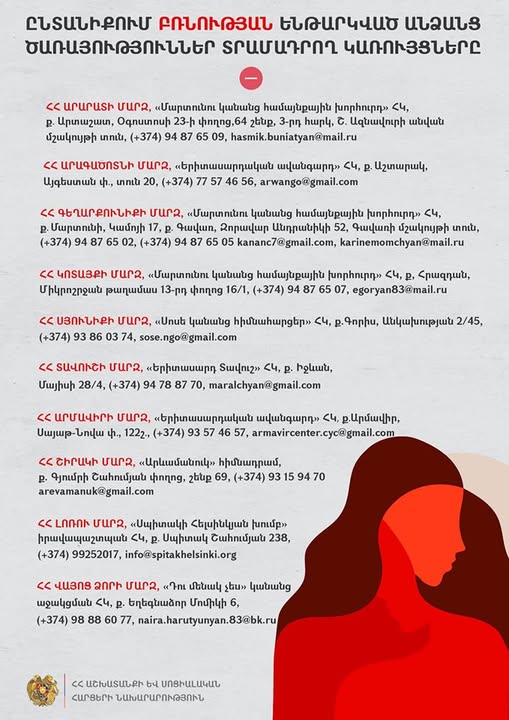 Ծրագրի նպատակն էր Լոռու մարզի ընտանեկան բռնության ենթարկված 100 կանանց տրամադրել անվճար իրավաբանական, հոգեբանական, սոցիալական ծառայություններ։